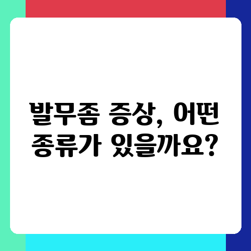 발무좀은 무좀균(피부사상균)이 발에 감염되어 나타나는 질환입니다. 가장 흔한 증상은 가려움증인데요, 발가락 사이가 하얗게 변하거나 갈라지고, 심한 경우 물집이나 진물이 생기기도 해요. 발무좀은 크게 세 가지 유형으로 나눌 수 있습니다. 첫째, 지간형 무좀은 발가락 사이, 특히 4번째와 5번째 발가락 사이에 습하고 하얗게 변하며, 가려움증이 심해요. 둘째, 수포형 무좀은 발바닥에 작은 물집이 여러 개 생기고, 가려움증과 함께 통증을 동반하기도 합니다. 마지막으로, 각화형 무좀은 발뒤꿈치나 발바닥이 두꺼워지고 갈라지는 것이 특징이며, 가려움증보다는 건조하고 단단한 피부가 주된 증상이에요. 이렇게 증상이 다양하기 때문에, 자신에게 나타나는 증상을 잘 파악하고 적절한 치료를 받는 것이 중요합니다. 혹시 발에 이상한 증상이 나타난다면 피부과 전문의와 상담하시는 것을 추천드려요. 정확한 진단을 받고, 나에게 맞는 치료법을 찾는 것이 가장 중요하니까요. 이 외에도 드물지만 옴이나 건선 등 다른 질환과 증상이 비슷할 수 있으니, 자가진단보다는 전문가의 진료를 받으시는 것이 좋습니다.
