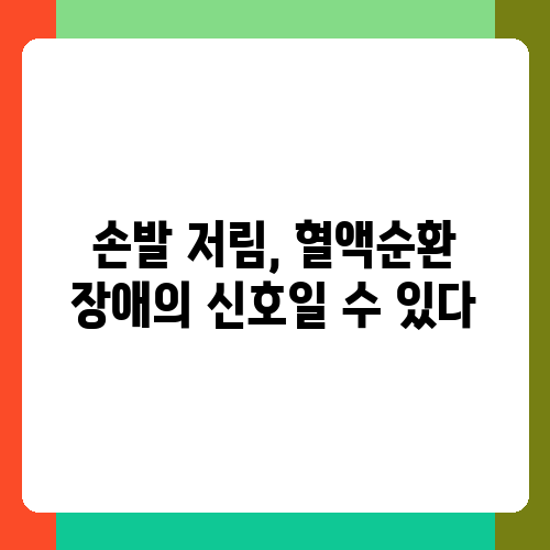 손발이 차가운 증상은 단순히 추위를 타는 것 이상의 의미를 가질 수 있습니다. 손발 저림과 함께 나타난다면 혈액순환 장애를 의심해 볼 필요가 있어요. 혈액순환이 원활하지 않으면 신체 말단 부위까지 따뜻한 피가 충분히 전달되지 않아 차가움을 느끼게 되는 것이죠. 혈액순환 장애는 심혈관 질환의 위험 신호일 수 있으므로, 지속적인 증상이 나타난다면 병원을 방문하여 정확한 진단을 받는 것이 중요합니다. 저도 예전에 손발 저림과 함께 손발이 차가운 증상이 지속되어 병원에 갔더니, 혈액순환 개선을 위한 생활 습관 변화를 권유받았어요. 심각한 질환은 아니었지만, 꾸준히 관리해야 한다는 점을 깨달았습니다. 자신의 건강 상태를 먼저 확인하고, 필요에 따라 전문가의 도움을 받는 것이 좋습니다.
