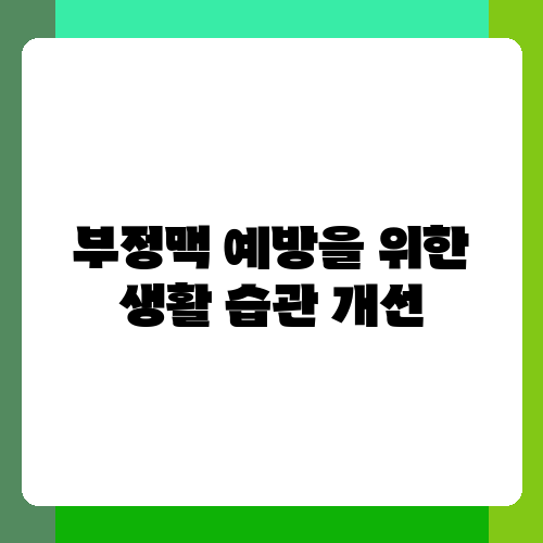 부정맥 예방을 위해서는 건강한 생활 습관을 유지하는 것이 매우 중요합니다. 금연, 절주, 규칙적인 운동, 균형 잡힌 식사 등은 심장 건강에 도움이 되고 부정맥 발생 위험을 줄여줍니다. 또한, 스트레스 관리 또한 중요합니다. 과도한 스트레스는 심장에 부담을 주어 부정맥을 악화시킬 수 있으므로, 스트레스 해소를 위한 노력을 하는 것이 필요해요. 충분한 수면을 취하고, 정기적인 건강 검진을 통해 자신의 심장 건강 상태를 확인하는 것도 부정맥 예방에 도움이 됩니다. 작은 변화부터 시작하여 건강한 생활 습관을 유지하도록 노력하세요. 건강한 삶은 건강한 심장으로부터 시작합니다.