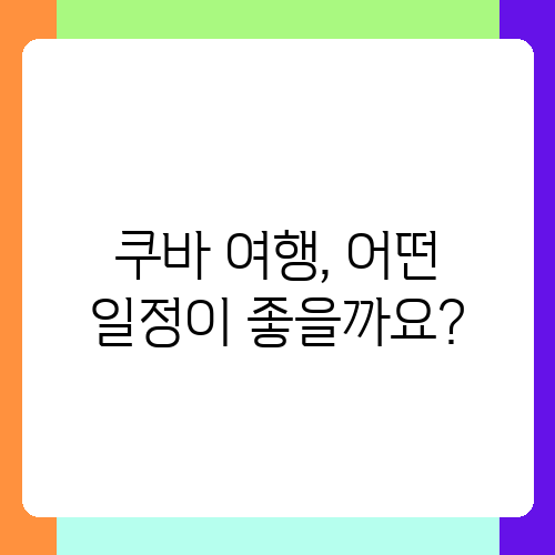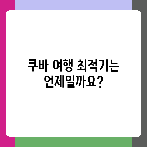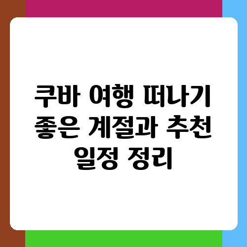 쿠바 여행을 꿈꾸고 계신가요? 카리브해의 매력적인 섬, 쿠바는 아름다운 자연과 독특한 문화를 간직한 곳이에요. 하지만 언제 가야 가장 좋은 여행이 될까요? 이 글에서는 쿠바 여행에 최적의 시기와 함께 추천 일정까지 알려드릴게요. 신나는 쿠바 여행을 계획하는데 도움이 되길 바라며, 지금 바로 함께 떠나볼까요?