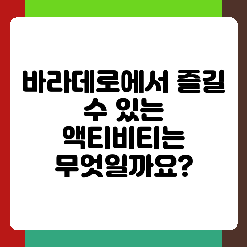 바라데로에서 즐길 수 있는 액티비티는 무엇일까요?