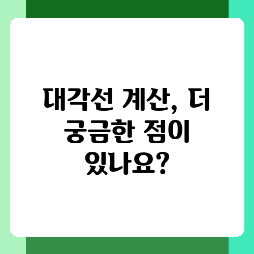 대각선 계산에 대해 더 궁금한 점이 있거나, 더 어려운 문제를 풀어보고 싶다면 언제든지 질문해주세요. 댓글을 통해 질문을 남겨주시면 제가 최대한 자세하게 답변해 드리겠습니다. 함께 배우고 성장하는 과정을 통해 대각선 계산에 대한 자신감을 키워나가요. 여러분의 질문과 참여가 더욱 풍성한 학습 경험을 만들어낼 거예요. 이 글이 여러분의 대각선 계산 실력 향상에 도움이 되었기를 바라며, 앞으로도 수학 공부를 즐겁게 이어나가시기를 응원합니다!