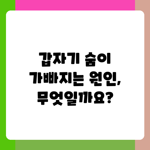 숨을 쉴 때 갑자기 가슴이 답답하고 숨이 차는 경험, 누구나 한 번쯤 해봤을 거예요. 잠깐의 불편함으로 지나갈 수도 있지만, 심각한 질환의 신호일 수도 있기 때문에 주의 깊게 살펴봐야 합니다. 이 글에서는 갑자기 숨이 가빠지는 증상이 나타났을 때 의심해 볼 수 있는 주요 질환들을 자세히 알아보고, 어떤 상황에서 병원을 방문해야 하는지 함께 생각해 보도록 하겠습니다.