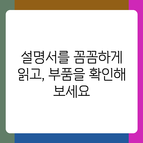 설명서를 대충 훑어보고 조립을 시작하면 나중에 낭패를 볼 수 있습니다. 설명서에는 각 부품의 이름과 그림, 조립 순서가 자세하게 나와 있으니, 처음부터 끝까지 차분하게 읽어보는 것이 중요해요. 그리고 설명서에 나온 그림과 부품을 하나하나 대조하면서 부품이 모두 제대로 들어있는지 확인하는 것도 잊지 마세요. 저는 조립 전에 모든 부품을 꺼내서 종류별로 정리해 두는데, 이렇게 하면 조립 과정에서 부품을 찾느라 시간을 낭비하는 것을 방지할 수 있더라고요. 또한, 설명서에는 숨겨진 팁이나 주의 사항이 적혀 있는 경우도 있으니, 꼼꼼하게 살펴보면서 조립하는 것이 좋습니다. 혹시 설명서가 어려운 경우, 제조사에 문의하거나 온라인 동영상을 참고하는 것도 좋은 방법입니다.