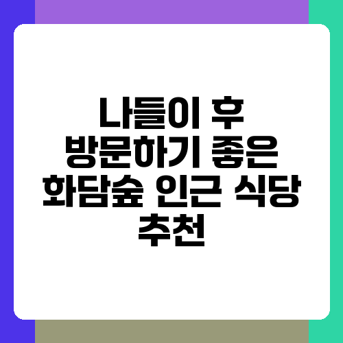 화담숲 주변에는 다양한 종류의 식당들이 있지만, 모두가 만족할 만한 곳을 찾는 것은 쉽지 않죠. 저는 여러 곳을 방문해보고, 깔끔함, 맛, 가격 등을 종합적으로 고려하여 몇 곳을 추려봤어요. 각 식당의 특징과 장단점을 비교해 드릴 테니, 여러분의 취향에 맞는 곳을 선택하시는데 도움이 될 거예요. 예를 들어, 가족과 함께 편안하게 식사하기 좋은 곳을 찾는다면 넓고 아늑한 분위기의 한정식집을 추천드리고, 데이트를 즐기고 있다면 분위기 좋은 카페를 함께 추천해 드릴 수 있답니다. 어떤 스타일의 식당을 원하시는지, 그리고 함께하는 사람은 누구인지 생각해보시고, 제가 추천하는 식당들을 비교해 보세요. 가격대도 다양하게 준비되어 있으니, 부담 없이 선택하실 수 있을 거예요.